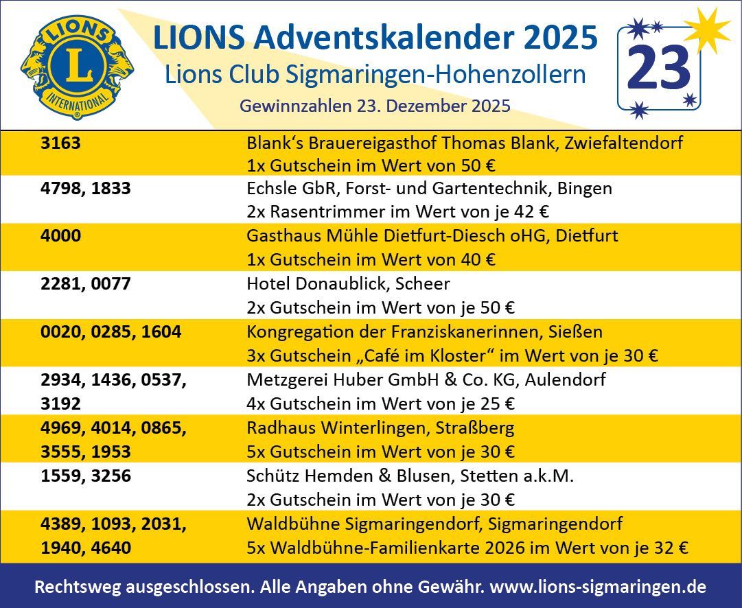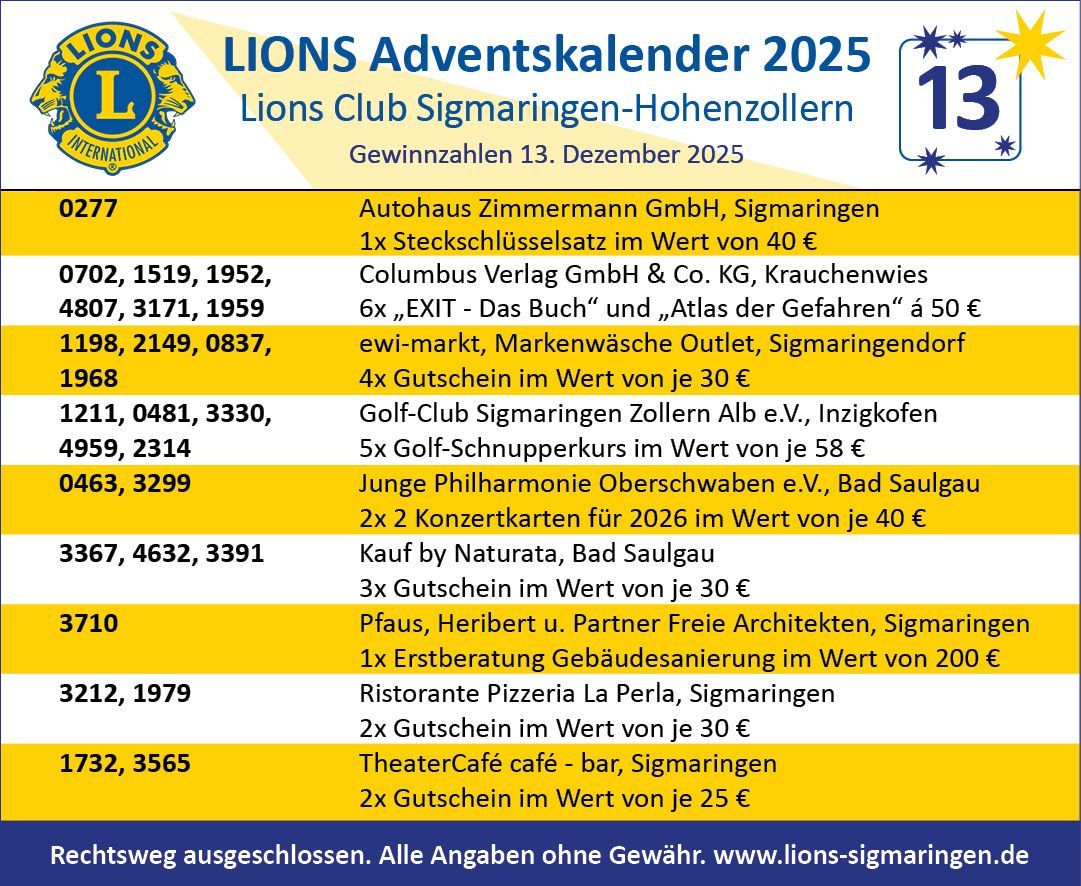 Der 1973 gegründete Lions Club Sigmaringen-Hohenzollern trifft sich alle zwei Wochen in wechselnden Locations des