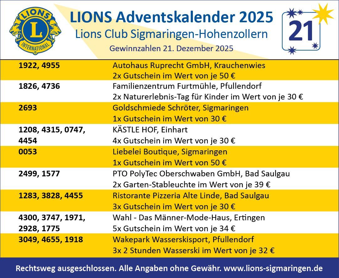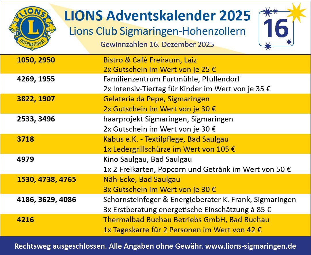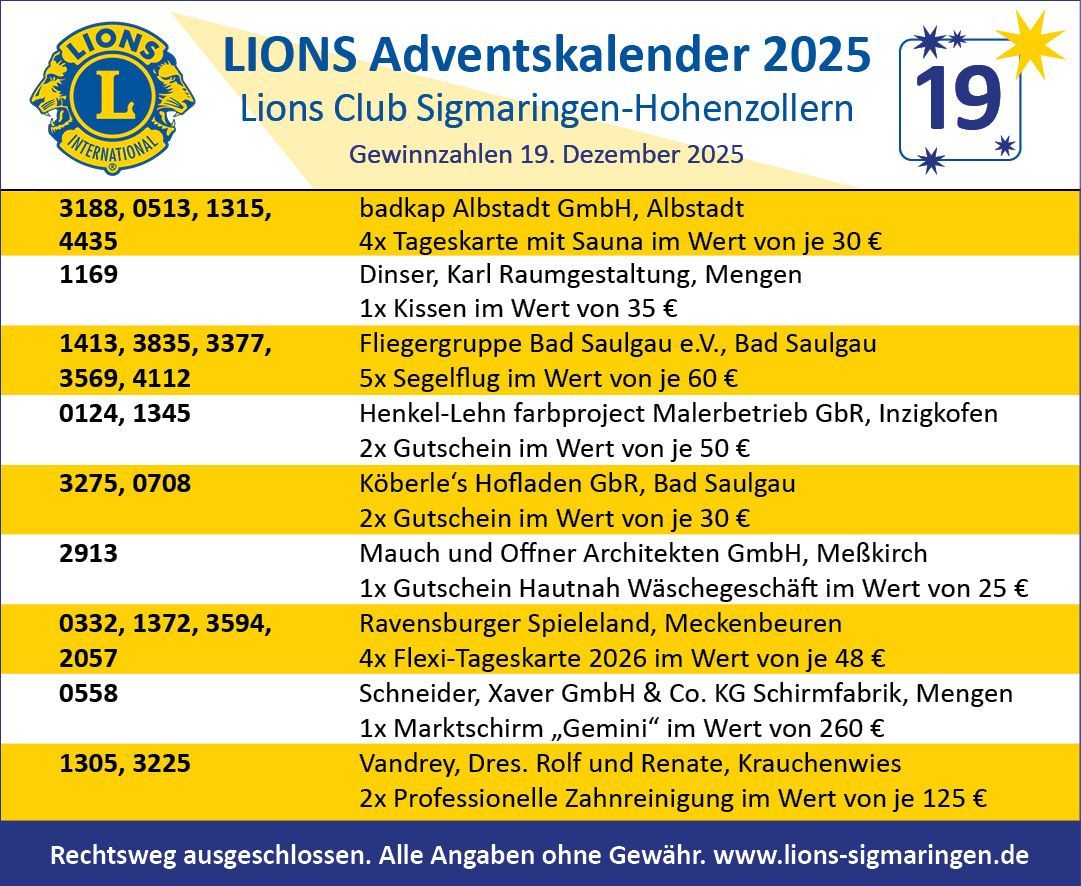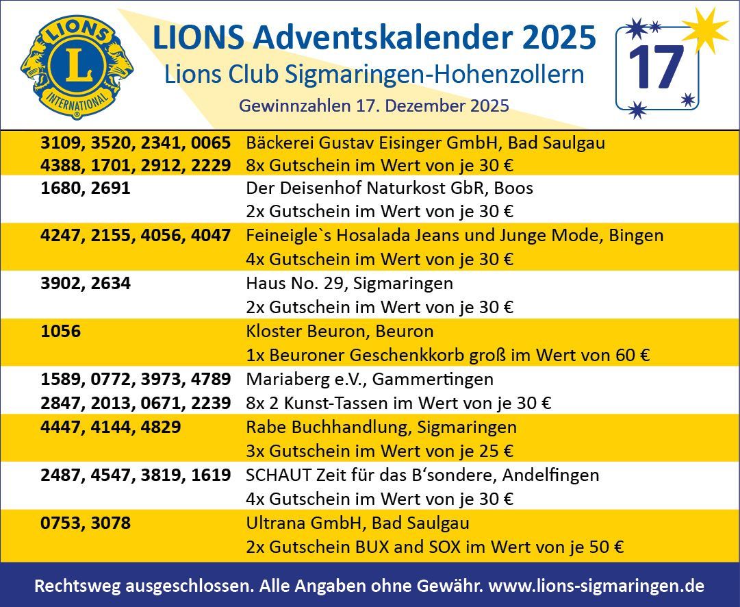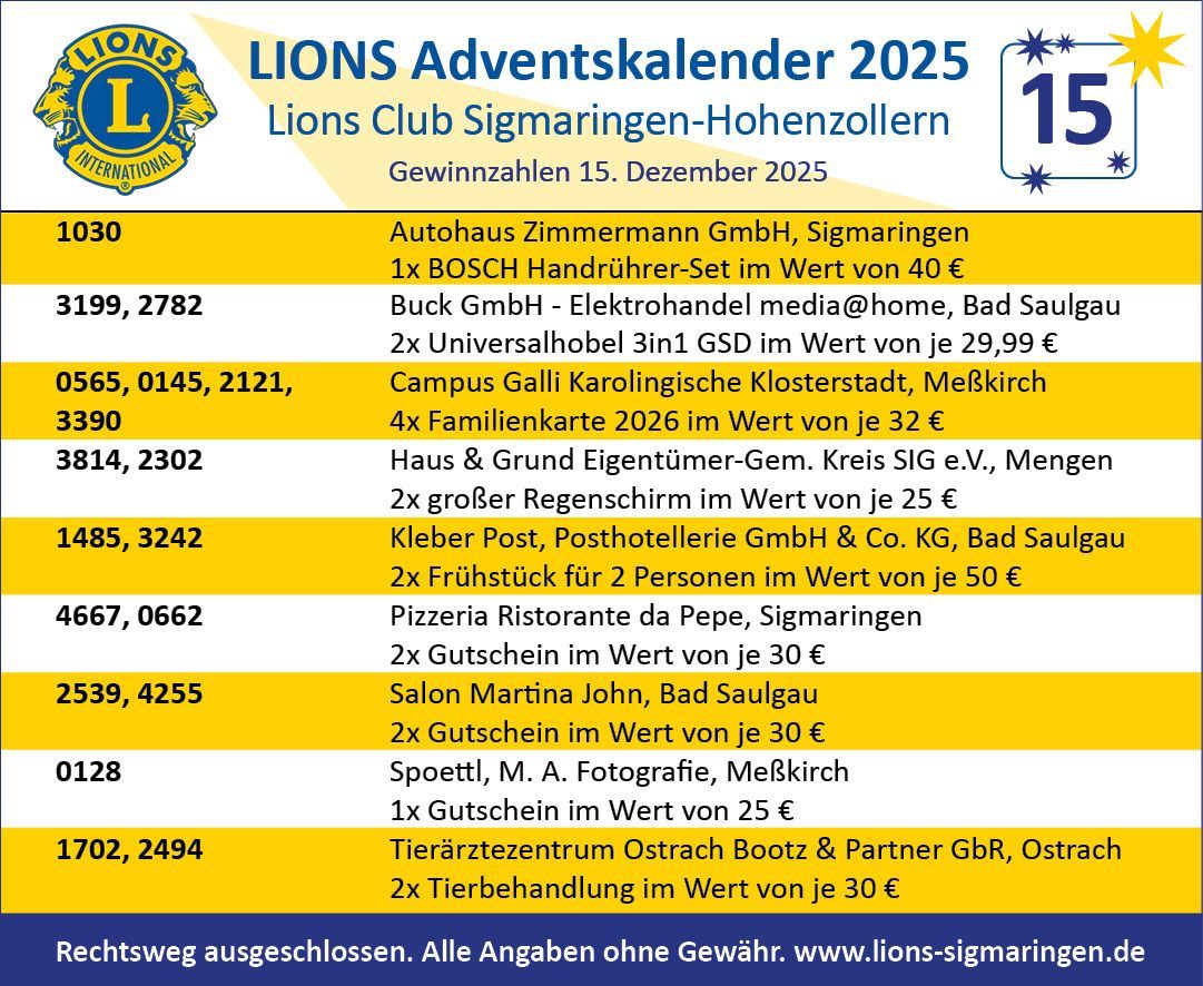 Herzlichen Glückwunsch allen Gewinnerinnen und Gewinnnern und ein ebenso herzliches Dankeschön an unsere Sponsoren!