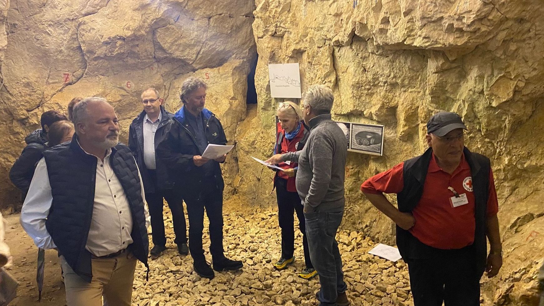 Vor genau 20 Jahren waren der Lions Club Sigmaringen-Hohenzollern unter der Ägide des damaligen Präsidenten Tilmann Kästle zu Besuch auf der Ruine Dietfurt. Seinerzeit ging es sehr sportlich zu mit Besteigen des Turmes und anschließendem Abseilen durch die Bergwacht. Diesmal lag der Fokus auf der Geschichte und Archäologie des Ortes, d.h. es ging um die Kultstätte der Neutempler und Funde aus der Eiszeit. Walter Paape aus Sigmarginendorf forscht seit vielen Jahren zur Geschichte um die Ruine Dietfurt. Er konnte belegen, dass Dietfurt das Zentrum des Erzpriorates Staufen der Neutempler in Deutschland war, wo sich regelmäßig um die 15 Neutempler trafen, um okkultistische Messen zu feiern. In seinem interessanten Vortrag mit beeindruckendem Bildmaterial zeigte er die Bedeutung der Neutempler auf Hitler und die Geschichte des 3. Reiches auf. Diese waren eine esoterische, frauenfeindliche, okkultistische und antisemitische Bewegung, die trotz einer geringen Zahl an Mitgliedern massiven Einfluss auf die Politik des Nationalsozialismus hatte. So finden sich z. B. entscheidende Passagen aus den sog. Ostaraheften des Ordensinitiators Josef Adolf Lanz inhaltsgleich in „Mein Kampf“ wieder. Die Archäologin Frau Fieber berichtete ebenfalls sehr fundiert über die stein- und bronzezeitlichen Funde in der Höhle. U.a. war hinter dem heutigen Höhleneingang eine achäologisch bedeutsame kreisrunde Feuerstelle entdeckt worden, die im Ganzen abtransportiert wurde und heute im Landesmuseum Stuttgart besichtigt werden kann.